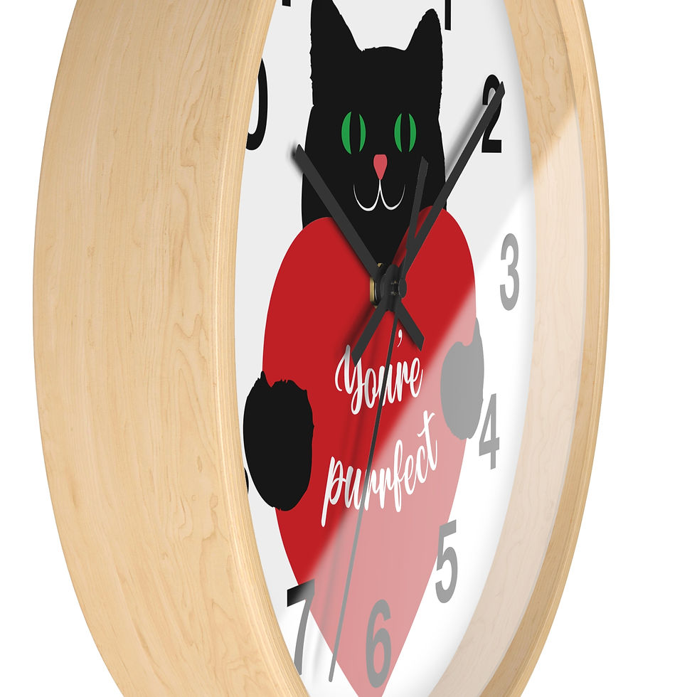 Purrfect Valentine Cat Wall Clock — "You're Purrfect" Heart Design